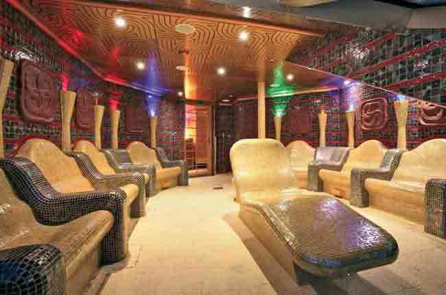 Cabine cama de casal king size - varanda - sala de estar - banheiro com chuveiro e banheira - jacuzzi - Tv - Telefone - cofre - serviço de cabine 24h - ar condicionado - mini bar - secador de cabelo - entrega diária de almoço e jantar - escolha do travesseiro - chinelos e roupões de banho - kit de banho - área de 36m²